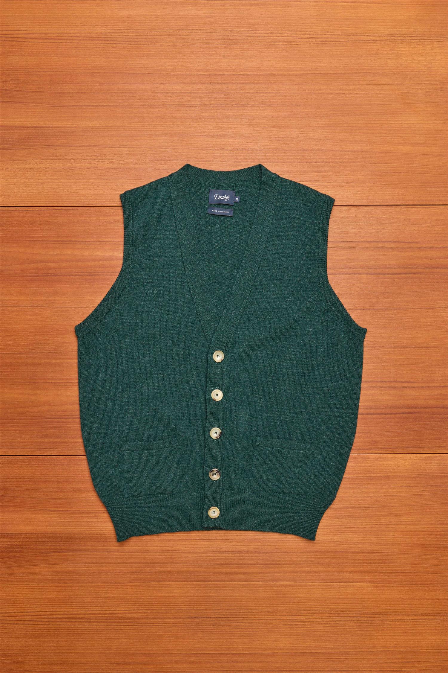 Green Sleeveless Cardigan Lambswool