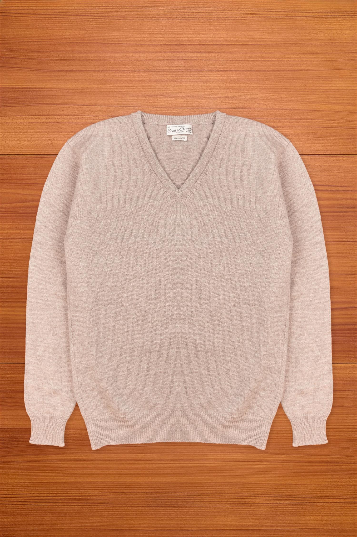 Mushroom V-Neck Lambswool Jumper